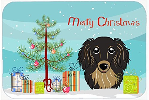 Caroline's Treasures BB1585CMT Christmas Tree and Longhair Black and Tan Dachshund Kitchen or Bath Mat, 20 by 30", Multicolor