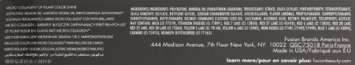 Studio : Fusion Beauty Publisher : Fusion Beauty Binding : Misc. Product Description A collection of vibrant sexy shades with a moisturizing treatment gloss infused with LipFusion’s revolutionary Micro-Injected Collagen plumping technology. Tiny, dehydrated, marine collagen micro spheres are instantly absorbed by the lips, and seek out the body's natural moisture. When spheres become re-hydrated, they plump and hold onto the moisture they've collected, creating a mild "swelling" of the lip tissue. 0