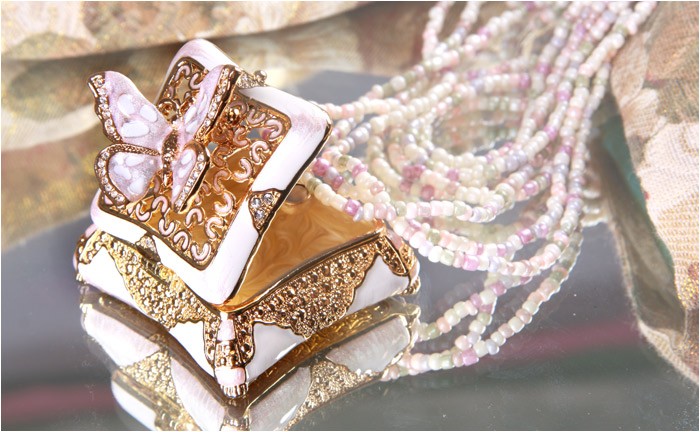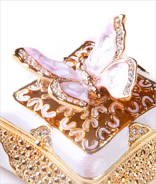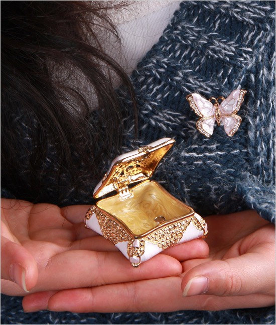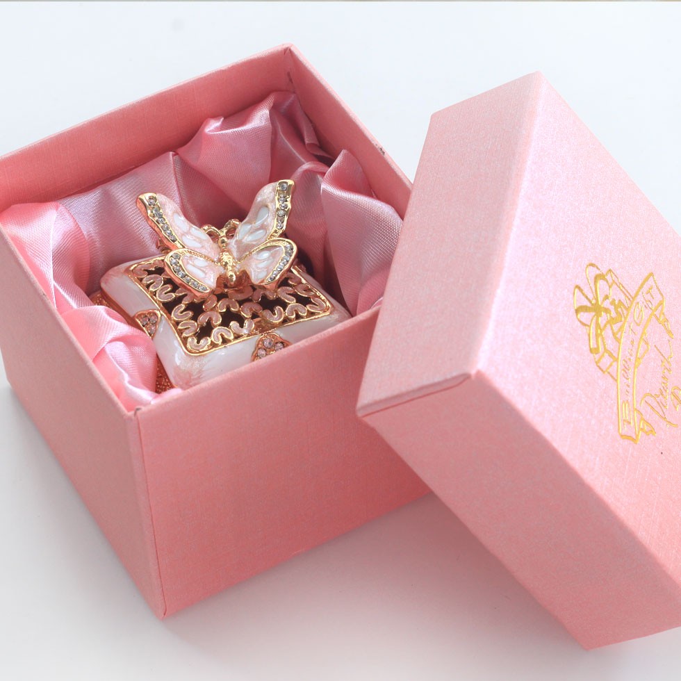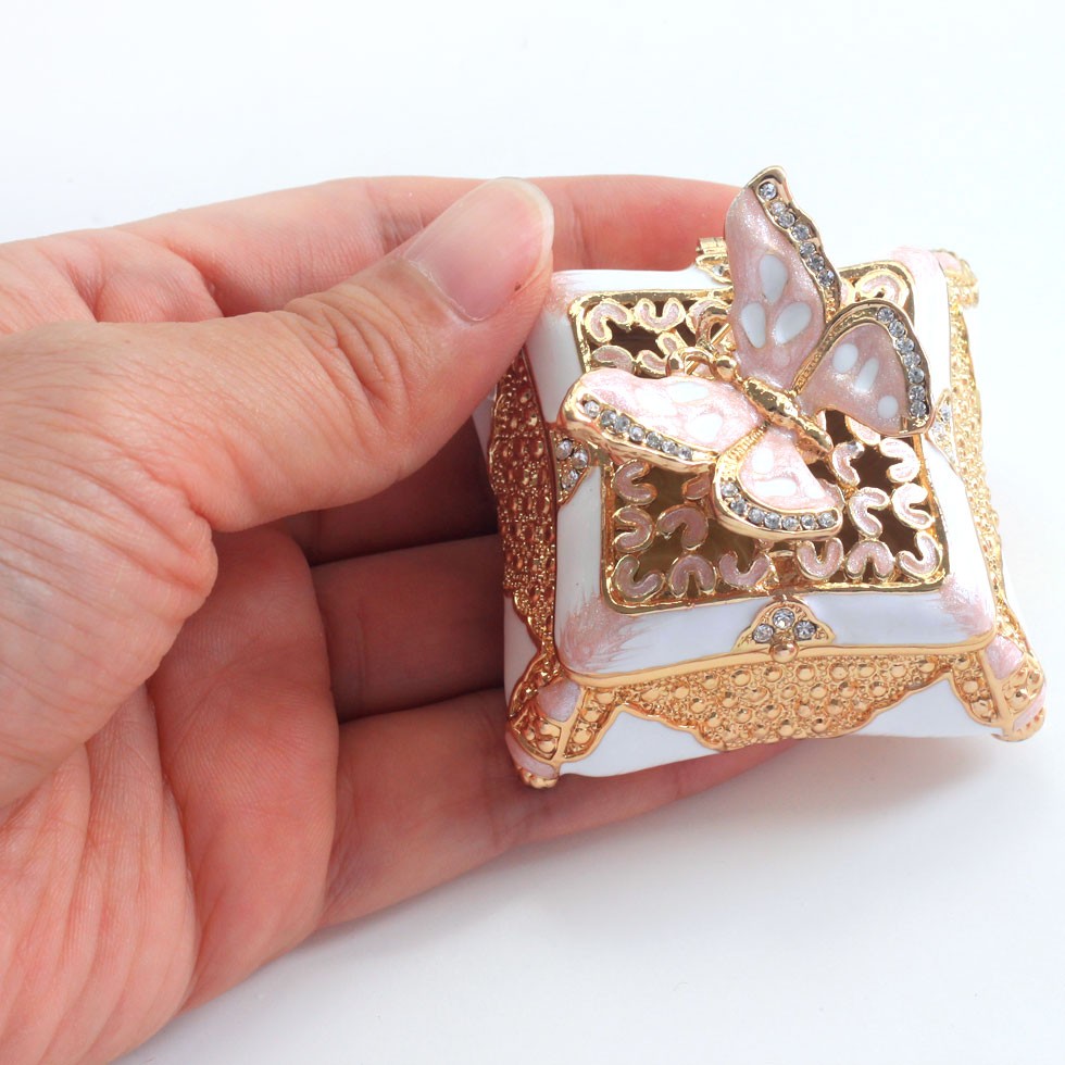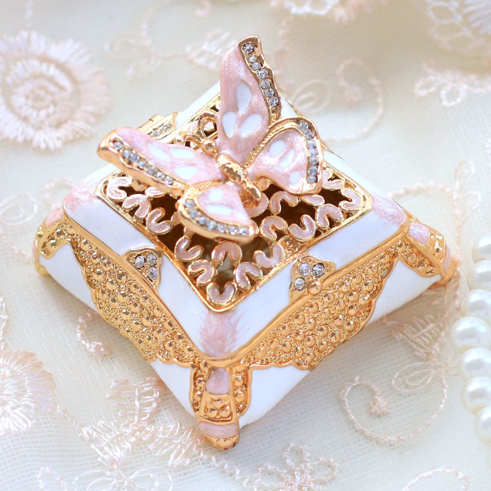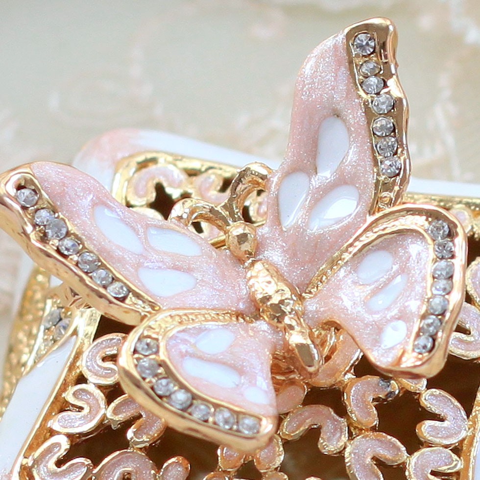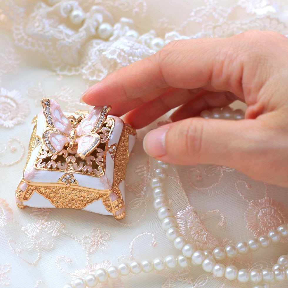 | ジュエリーボックスと言えば、指輪やピアス、ネックレスなどのアクセサリーを入れる引き出し型のケースを思い浮かべる方が多いかもしれません。 ピィアースのジュエリーボックスは、動物や花などをモチーフに作られ、合金製でずっしりとした重さがあります。また高品質のクリスタルガラスを贅沢に使用。まるでジュエリーボックスそのものが宝石のような、高級感溢れる仕上がりです。 小物入れとしても使えるように開閉口には磁石が取り付けてあり、アクセサリーなどなくしやすいアイテムの収納ができます。キラキラと美しく輝く宝石箱は、そのまま飾って楽しめるインテリア雑貨として多くの方に愛されています。 国内トップクラスのジュエリーボックスメーカーであるピィアースは、2004年ごろから本格的に宝石箱の製造を始め、現在のジュエリーボックスはなんと300種類以上。大規模展示会でもご好評いただいており、全国有名百貨店でも販売されています。 自社工場でひとつひとつ丁寧に手作りし、原型作成、研磨、加工、着色、小さなクリスタルガラスの取り付けなども全て手作業で行われるこだわりのハンドメイド品。完成後は厳しい検品の後、丁寧に梱包作業をしお客様にお届けしております。 ピィアース商品は、全国有名百貨店および全国有名宝石店チェーンにてお取り扱いいただいている高品質商品です。 ★自分へのご褒美に…コレクションして並べて飾ると、さらにかわいらしさUP! ★恋人へのプレゼント…中にアクセサリーを入れて、サプライズな贈り物として ★家族への感謝ギフト…お母さんや姉妹へ、日頃のありがとうの気持ちを込めて ★誕生日プレゼント…お友達の喜ぶ顔が見たいから、いつもと違うキラキラギフトを ★小さな女の子へ…まるでお姫様が使っているようなキラキラ宝石箱は女の子の憧れ! |