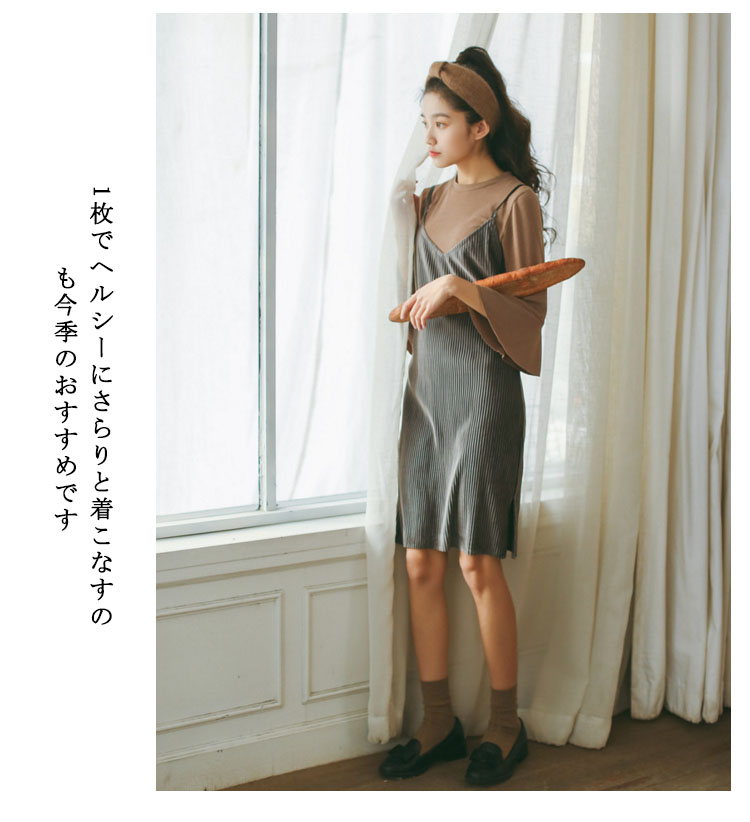 | 大人ジュアルにもフェミニンスタイルにも着回し自在なキャミソールワンピース。シンプルなTシャツやニットを合わせれば旬のカジュアルスタイルが即完成膝丈のストンとしたシルエットと、サイドに入ったスリットでスタイリングの鮮度をグンと高めてくれる、トレンド感のある1着です☆1枚でヘルシーにさらりと着こなすのも今季のおすすめです | |