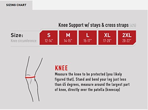 -. Feature : This item is intended to fit snugly and may feel tight upon first wear. Please review the size guide below for appropriate sizing / SIZING: Measure largest part of knee. Small (12-14 inches), Medium (14-15 inches), Large (15-17 inches), X-Large (17-20 inches), XX-Large (20-22 inches) / Two-sided nylon construction ensures long-lasting durability; fits either right or left knee / Padded buttress, two medial, and two lateral stays create solid joint stabilization / Two Velcro straps and four elastic crossing straps provide additional ligament support; redesigned wide back allows increased mobility and motion / Neoprene material is 0.1875 inches thick, for therapeutic heat retention and soft tissue compression