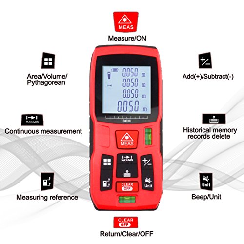 Multi-Use: Distance measurement, area/volume and pythagorean calculation are provided to fulfil most of measurement conditions, and offer measurements in inches, feet, decimal feet and metric units.