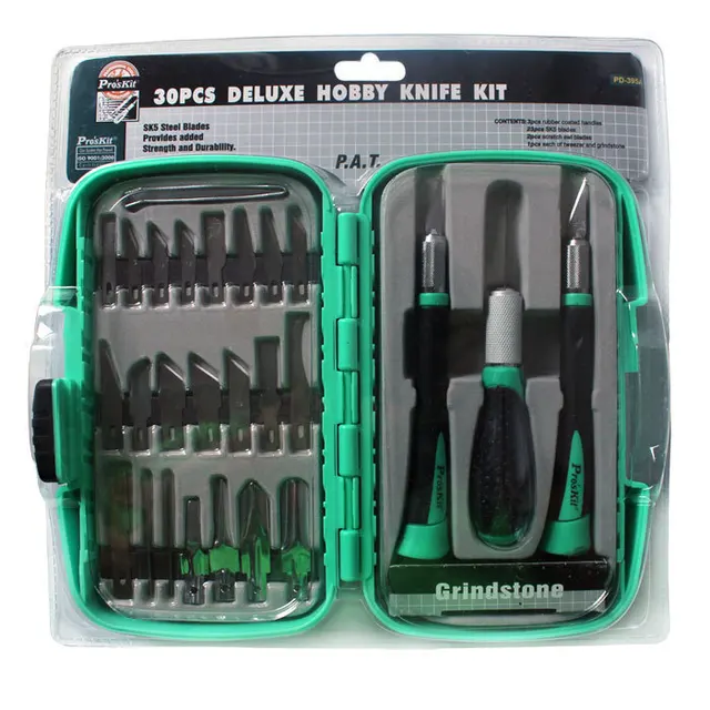 Pro'sKit PD-395A 30 개 디럭스 취미 칼 키트 부드러운 고무 손잡이 SK5 블레이드 조각 칼 그래버