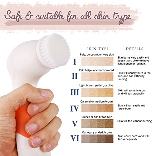 - --- PREMIUM MATERIAL --- The facial cleansing brush set is made of waterproof, non-toxic ABS material, which makes it durable and will lasts for a lifetime usage! Waterproof scrubber boosts your skin inner circulation which means it will tighten your skin and prevent ingrown hairs. This facial cleanser set is without chemical residues, which makes it safe and suitable to use for all types of skin: oily, dry, mixed, sensitive, and more!