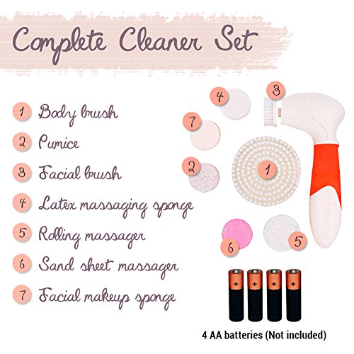 - --- COMPLETE CLEANSING SET --- Top Power Cleanser (TM) is a full set of facial rotating brush, with 6 different heads and a pumice stone. Powerful exfoliating system, pore minimizer, treat acne spots and acne scar treatment, remove body acne, correct dark spot, cleanse clogged pores and enhance skin tone. Various brushes pieces; match the brushes for different skin types.