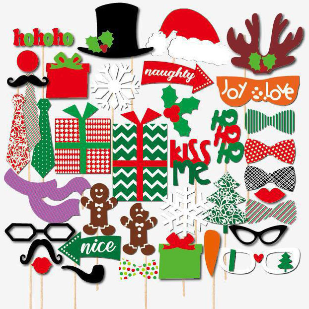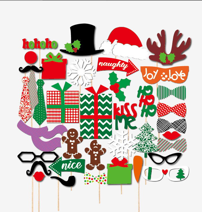 Christmas 39 sets of sets of props proclaimed Christmas hat snowflake New Year creative paper beard lips party party