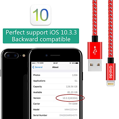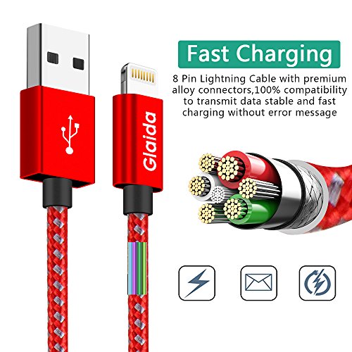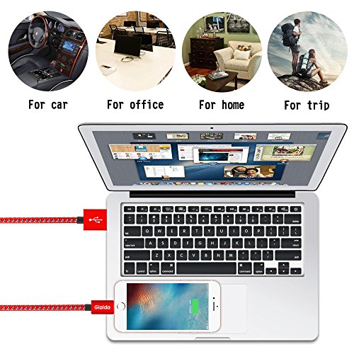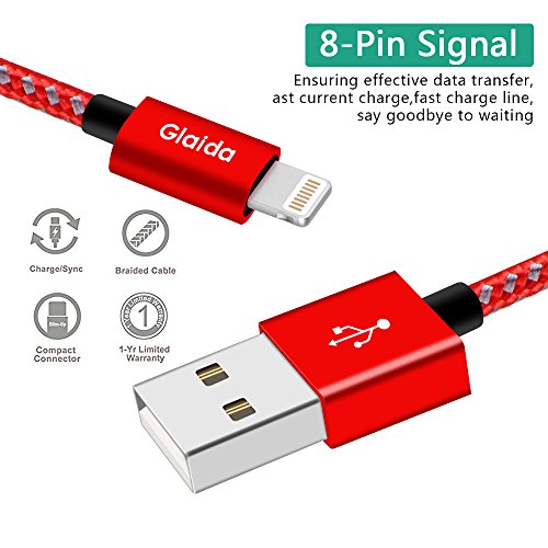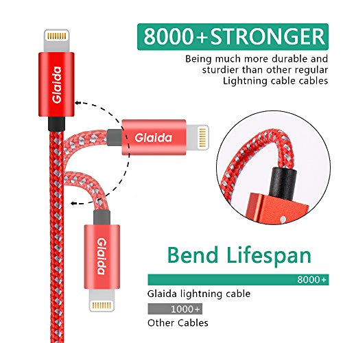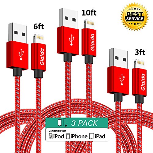 Glaida Lightning Cable 3Pcs 3ft 6ft 10ft Extra Long Nylon Braided iphone Cable High Speed Charging Cables Cord for iPhone Charger 7/7Plus/6/6Plus/6S,5/5S/SE,iPad/iPod Compatible with IOS(Red+Gray)