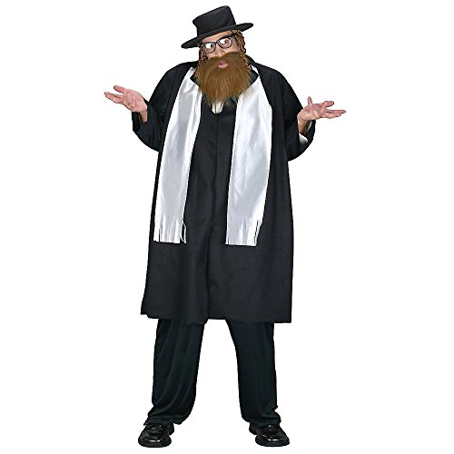 Studio : Fun World Publisher : Fun World Product Description The Rabbi Adult Plus Size Costume includes a long coat, fringed scarf, hat with attached payis, and beard. This outfit is great for Halloween, and makes a funny partner with a Catholic Priest Costume. 0