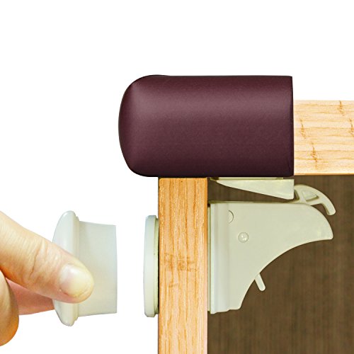 - ✔What You Get: 1 Set Magnetic Cabinet Locks (4 Locks+1 Key) + 8 Pack L-shaped Corner Cushions, a must have for every mommy to add some protections at home