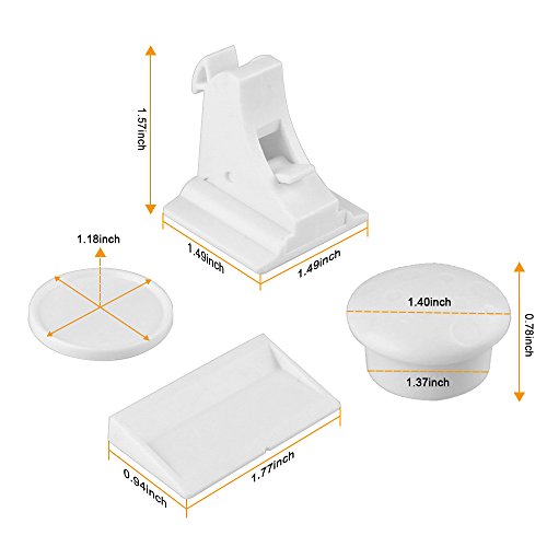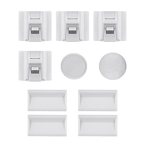 - Multiple uses,Securely shut your cabinets, drawers, appliances, toilets, trash cans, windows, pet food containers & more. Keep your little ones away from all the dangers in your home.The high quality 3M adhesive backing is strong yet removable, and additional adhesive gel gives you a secure fit if you decide to move a lock.