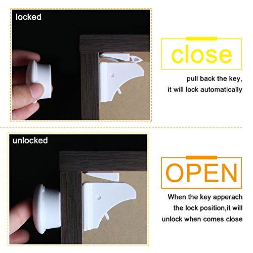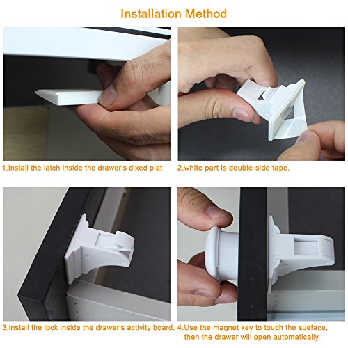 - Tools-free installation,super covenient in using.Just place the magnetic key on the surface,opposite to the lock body,the drawer will open automatically.