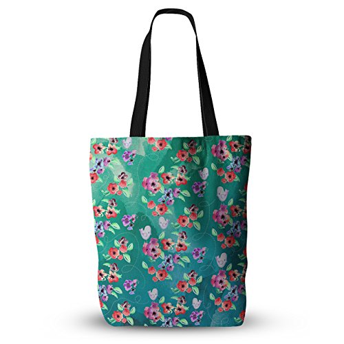 KESS InHouse Zara Martina Mansen "Spring Birds On Teal" Green Purple Everything Tote Bag, 18" x 18", Multicolor