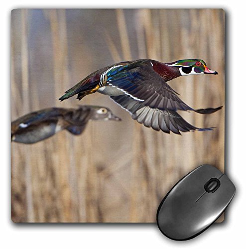3dRose LLC 8 x 8 x 0.25 Inches Mouse Pad, USA, Washington State, Wood Duck, Male, Female, Flight, Gary Luhm (mp_95624_1)