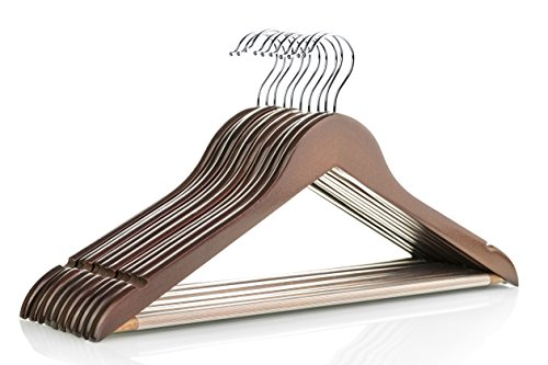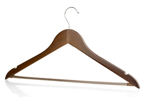 -. Title : Walnut Solid Everyday Wood Hangers with Non-Slip Bar and Notches, Super Sturdy and Durable Wood, 24 pack