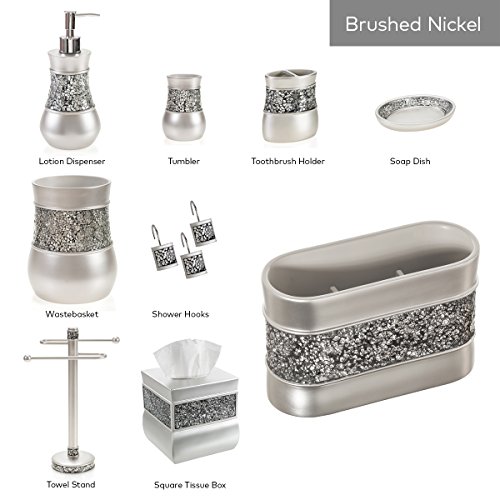 ADD A TOUCH OF BEAUTY: You’ll love this elegant silver brushed nickel design of the bathroom shelf organizer accented with mosaic glass detailing in the middle.