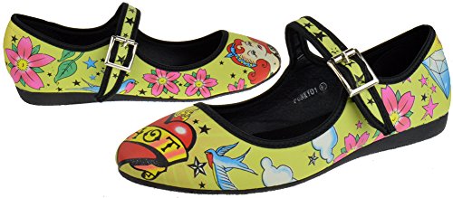 Product DescriptionThe Funky Tattoo Inspried ballerina flats are garanteed to turn heads any where you go. Stand out with these unique flats and dare to be different. Each foot has its own design pattern that's printed.0