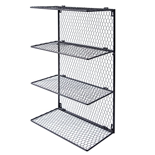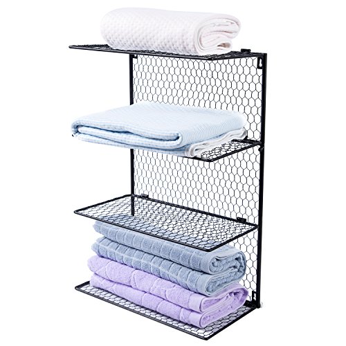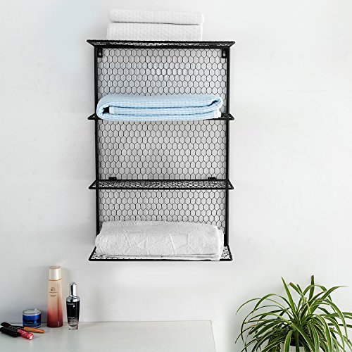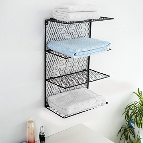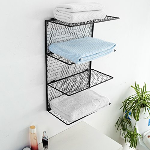 4-Tier Wall Mounted Metal Chicken Wire Mesh Bathroom Towel Storage Shelving Unit