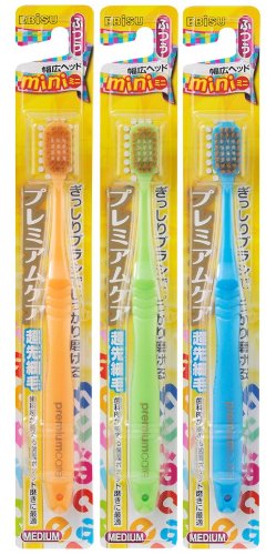 「エビス プレミアムケアハブラシ・ミニ ふつう 」は、幅広で植毛量が多く、歯との接触面積が広いので、ブラッシングの知識や技術がない子供でも簡単に効率よく歯垢を除去できるジュニアのための歯周病予防ハブラシです。