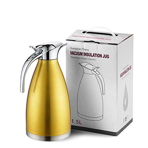 Studio : Winghun Publisher : Winghun Product Description Advantage: Thermal Pitcher, good quality thermal carafe. Material: Body made of high quality stainless steel plus spray finish; Handle and pouring spout made of Food Grade plastic with chrome finish. Double-wall insulation (stainless steel liner also, no metallic taste) Body remains cool to the touch with hot liquids and is condensation-free with cold(handle may a little warm which is normal) To pour drip-free, simply push the lever. Releasing the lever re-seals it. For easy filling and cleaning. Suitable for Coffee, Milk, Tea, Water etc... French press insulated carafe for table and kitchen or coffee shops, stylish appearance, convenient place Also suitable for al fresco dining.