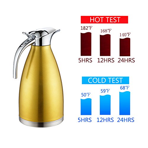 Notice: All of the thermal carafe coffee have heat insulation tests prior to shipment, however, some carafes may be damaged during the long distance transportation, which will affect the heat insulation effect. How to identify whether your insulated coffee carafe have been damaged: 1. Carafe's body hot to touch when you filled with hot liquid. 2. The silicone stopper can not cover the mouth competely. 3. There will be noise when you shake the carafe. Since we can't promise that every carafe is in a good condition in such a long cross-border transport process, we sincerely hope you can contact us firstly when you meet with such problems. And we promise we will deal with your problem within 24 hours after receving your emails. Hope you can understand and sorry for the inconvenience. 0