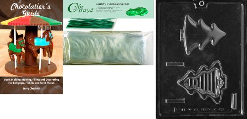 Cybrtrayd Small Tree Pour Box Chocolate Mold with Chocolatier's Bundle of 25 Cello Bags, 25 Green Twist Ties and Chocolatier's Guide