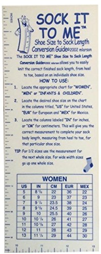 [Product Information]- Knitting socks this handy conversion chart is a simple way to see shoe size to sock length. The sock conversion guide allows you to easily knit the correct finished sock length from heel to toe based on shoe.Covers women, men and kids to infant.