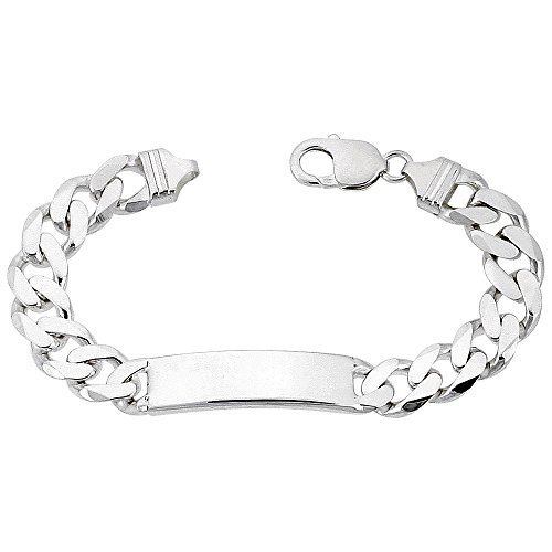 -. Title : Sterling Silver ID Bracelet Curb Link 3/8 inch wide Nickel Free Italy, sizes 8 - 9 inch