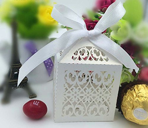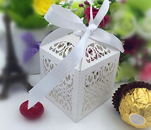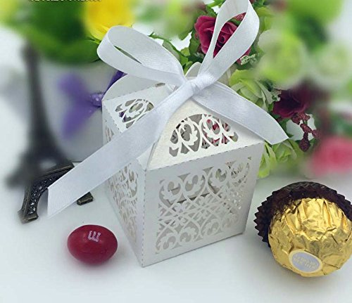 Joinwin New 50PCS New lace flower Laser Cut Candy Gift Boxes With Ribbon Wedding Party Favor Creative Favor Bags
