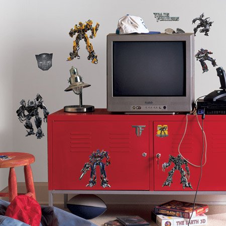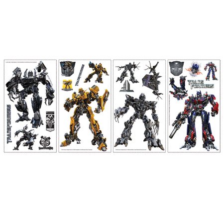 Transport yourself into your favorite film with our Transformers Wall Appliques. The set includes 20 pieces, with shapes of characters from the film such as Barricade, Bumblebee, Megatron, and Optimus Prime, as well as Transformers logos and emblems. Unique peel and stick pieces can be applied and reapplied to your room's walls without glue or tape.