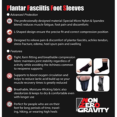Nonzero Gravity Planter Fasciitis Foot Sleeves - Heel Arch Support / Ankle Sock Compression for Men & Women (1 Pair) (Large)