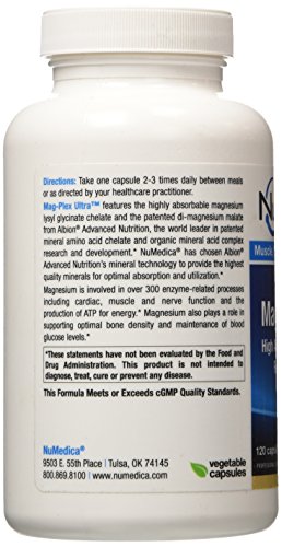 Mag-Plex Ultra features the highly absorbable magnesium lysyl glycinate chelate and the patented di-magnesium malate from Albion Advanced Nutrition, the world leader in patented mineral amino acid chelate and organic mineral acid complex research and development. NuMedica has chosen Albion Advanced Nutritions mineral technology to provide the highest quality minerals for optimal absorption and utilization. Magnesium is involved in over 300 enzyme-related processes including cardiac, muscle and nerve function and the production of ATP for energy. Magnesium also plays a role in supporting optimal bone density and maintenance of blood glucose levels.Feature