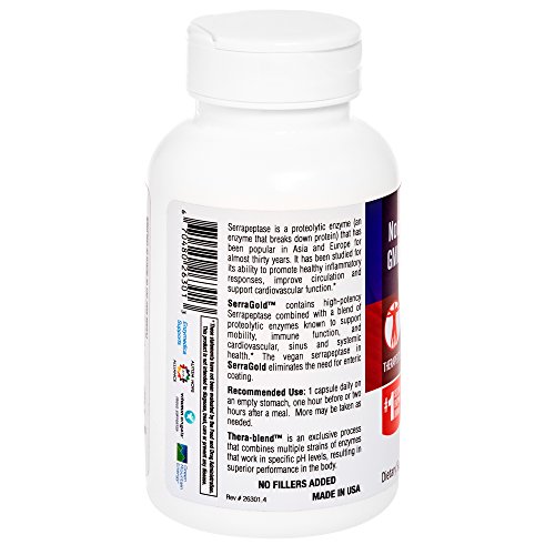 EXCLUSIVE THERA-BLEND: SerraGold contains Thera-blend enzymes. Thera-blend is an exclusive process that combines multiple strains of enzymes that work in specific pH levels, resulting in superior performance in the body.