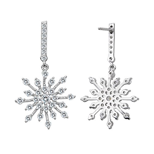 -. Title : EleQueen 925 Sterling Silver Winter Snowflake Bridal Drop Earrings