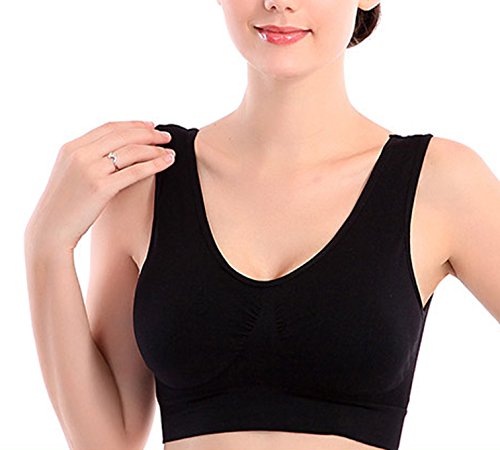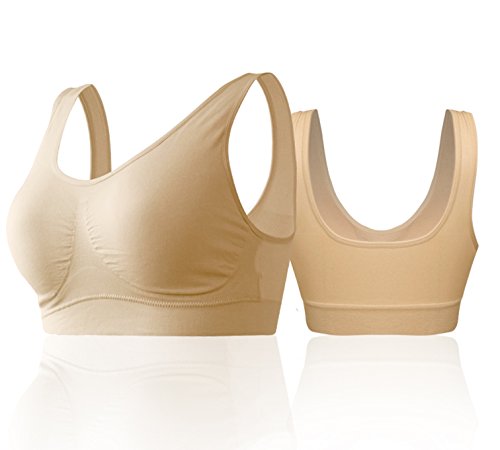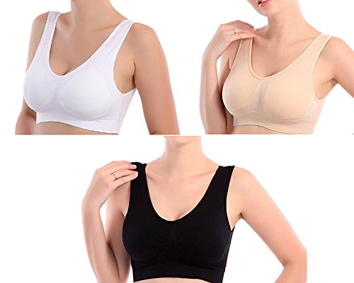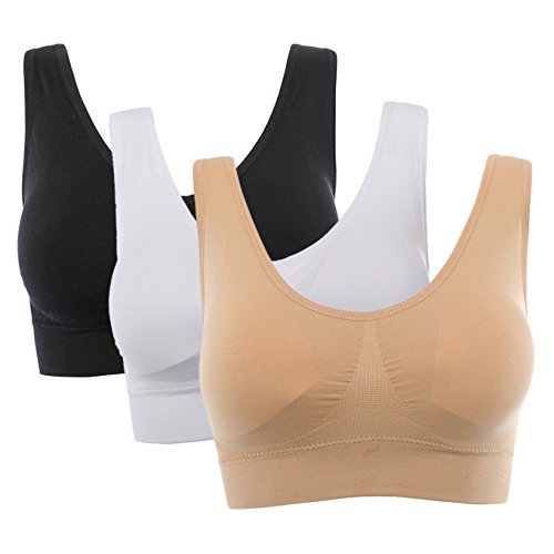 Orilife Women's 3 Pack Seamless Wireless Workout Bra with Removable Pads, White/Black/Nude