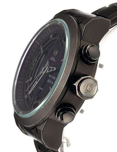 -. Title : Shark Men's Quartz Analog LCD Date Day Black Stainless Steel Band Wrist Watch SH343