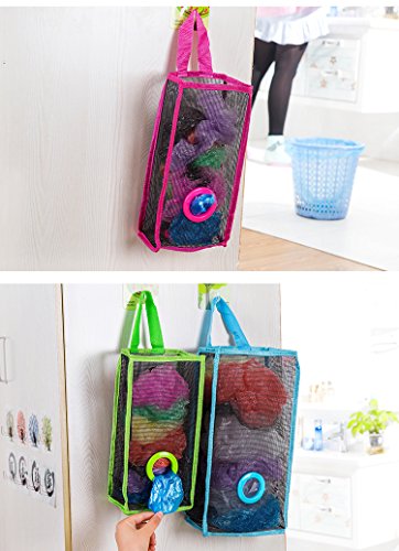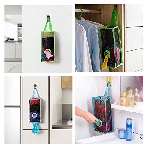 Flee Set of 2 Wall Mount Plastic Bags Holder Hanging Grocery Bag Container Plastic Grocery Bag Saver Mesh Grocery Bag Dispenser for Kitchen Bathroom Office