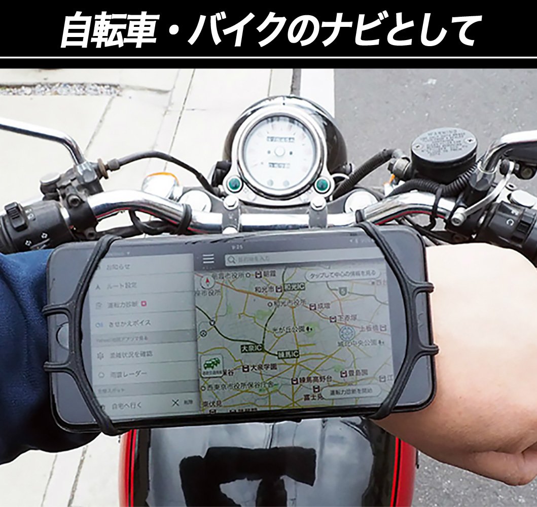 It is a type that fixes a smartphone with a rubber band, and it corresponds to various smartphones.
