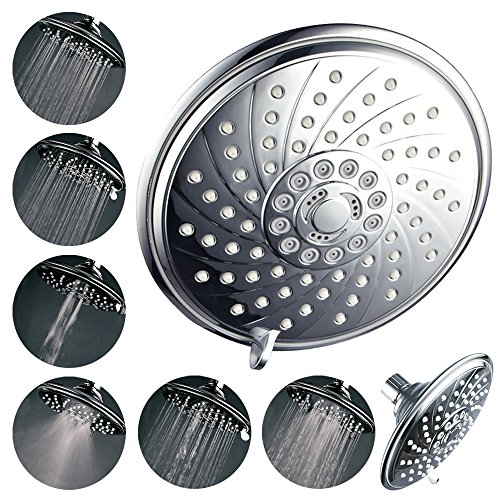 HotelSpa® Extra-Large 6-Inch Rain Shower Head for Exceptional Water Coverage! High-Pressure Angle-Adjustable Shower head features Rub-clean Jets, 6 Full Settings and Premium Chrome Finish