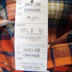 品 質 本体/綿100% フード/綿66% ポリエステル34%