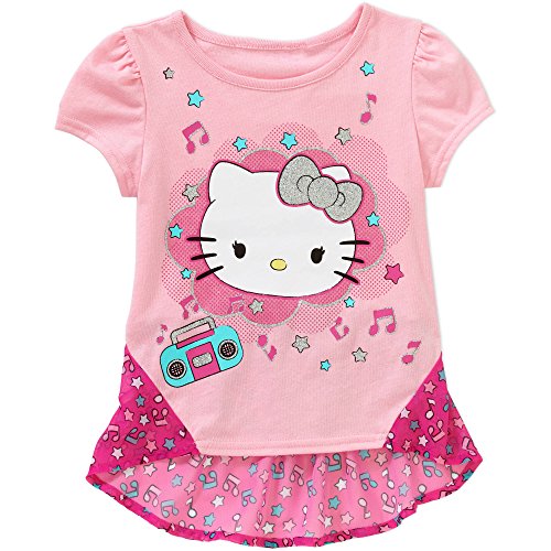 Hello Kitty Toddler Girl Chiffon Back Graphic Tee Shirt (2T)