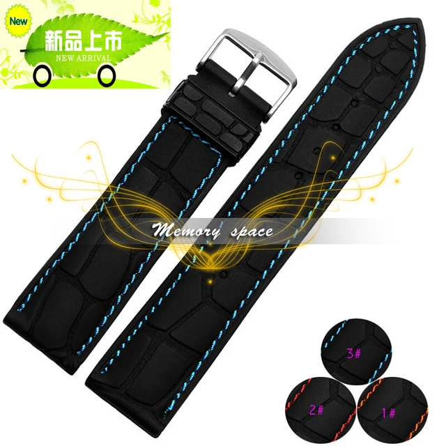 20mm 22mm Alligator grain Watch Band Wrist Rubber Mens Strap Sport Diver Waterproof Free shipping