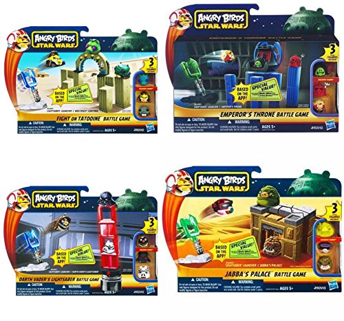 -. Feature : Includes Star Wars Angry Birds Emperor's Throne Room Battle Game / Jabba's Palace Battle Game / Darth Vader's Lightsaber Battle Game / Fight On Tatooine Battle Game / Includes 12 Exclusive Figures
