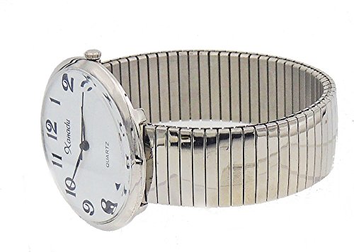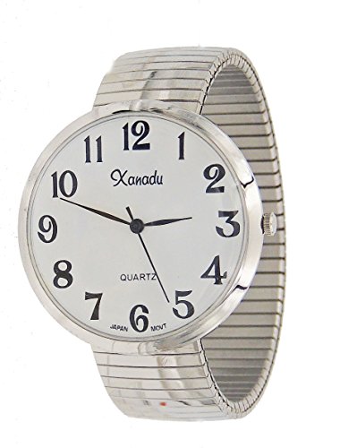 Unisex Large Face Stretch Band Easy to Read Watch-Silver Tone
