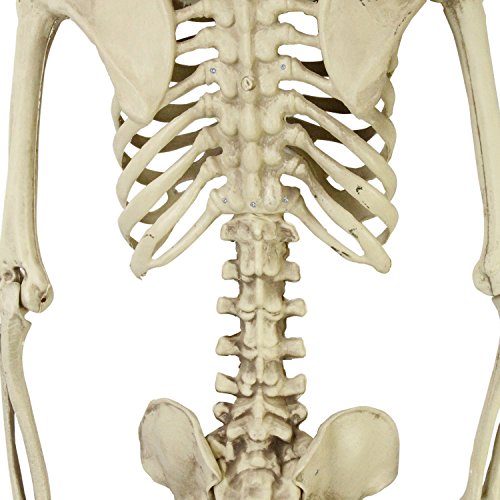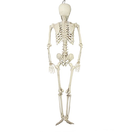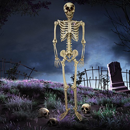 -. Feature : A frightful giant 7 foot realistic full body skeleton that you can hang from a wall or ceiling, pose it in a chair, drape it on a tree or just display it your own way. / It's made with durable all-weather plastic and has a realistic antique aged look to all the bones. All of the limbs and joints are adjustable, so you can make your own custom poses. / All of the bones are molded to look authentic and it includes a full rib cage, full spine, arms, legs and a skull with a posable jaw. / This spooky oversized human skeleton measures a full 7 feet from the head to the tip of it's toes and has nearly a 7 foot arm span. / A truly imposing skeleton prop that's the classic essential needed for any horrifying haunted house, graveyard or entryway!