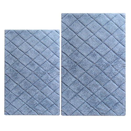 Chardin Home - 100% Cotton 2 Piece Impression Bath Rug Set, (24''x40'' & 21''x34'') Stone Blue