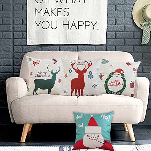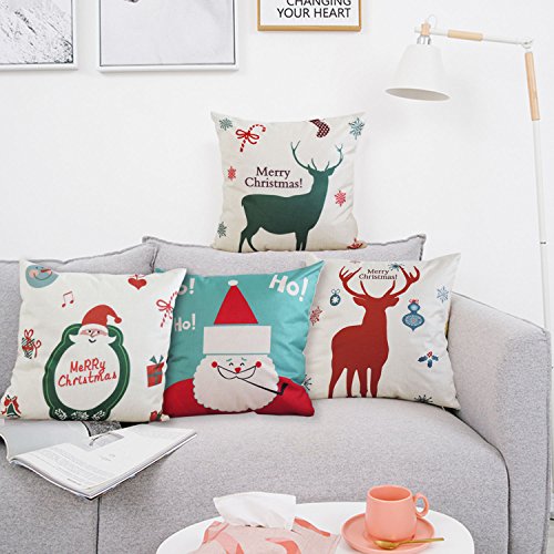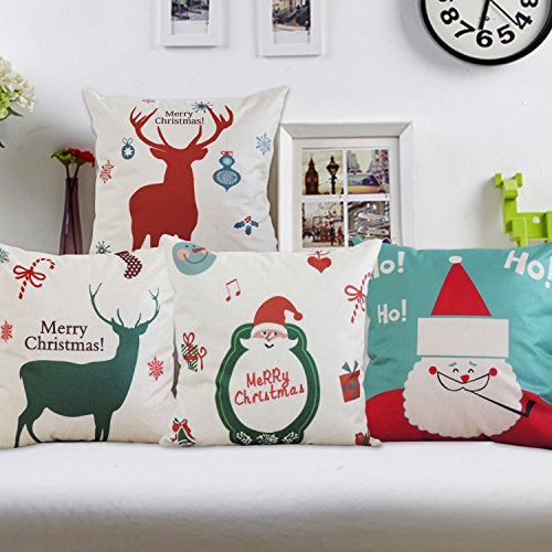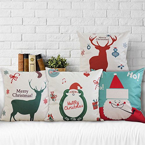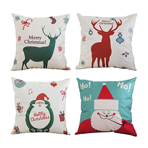 BLEUM CADE Pillow Covers Merry Christmas Series Throw Pillow Case Cotton-linen Santa Clau Christmas Deer Pillow Cover set of 4 Home Car Decorative Cushion Cover Square 18 X 18 Inch