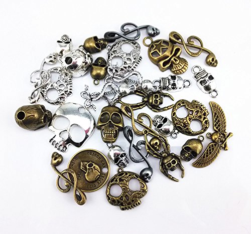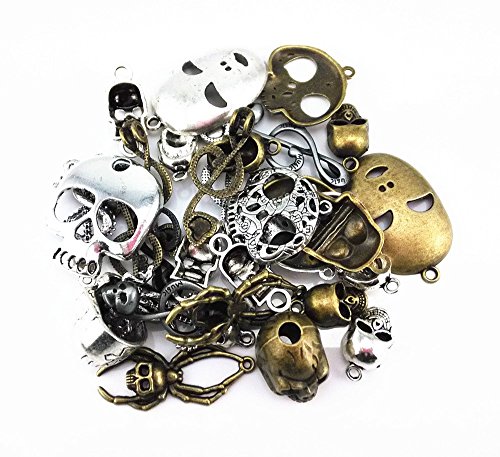 yueton 100 Gram (Approx 30pcs) Assorted DIY Antique Skull Charms Pendant Craft Making Accessory (Skull)