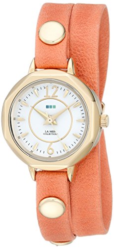 La Mer Collections Women's LMDELMARDW1504 Cantaloupe Gold Del Mar Stainless Steel Watch with Orange Wrap-Around Leather Band