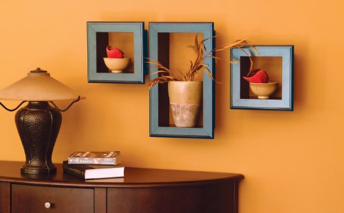 - Feature : 3-piece wall-mounted shelf set offers clean, versatile style / 1 rectangle and 2 square cubes for endless arrangement possibilities / Crafted of solid wood with lustrous black finish / All cubes are 4-1/2 inches deep and hold 10 pounds / Squares measures 9 inches wide by 9 inches high; rectangle measures 10 inches wide by 18 inches high
