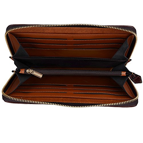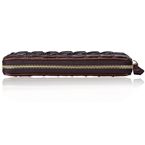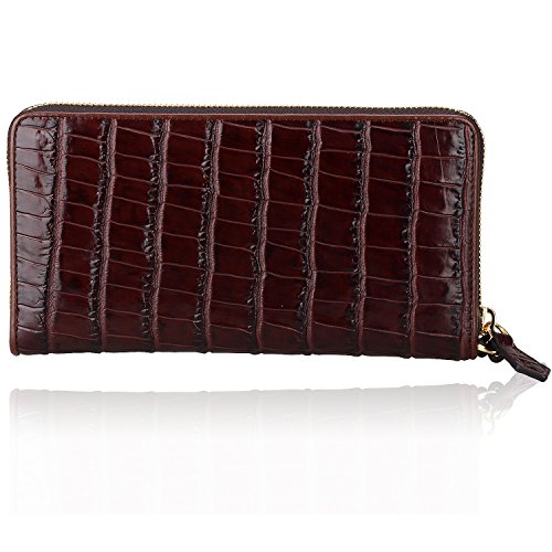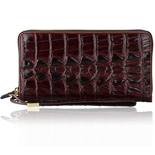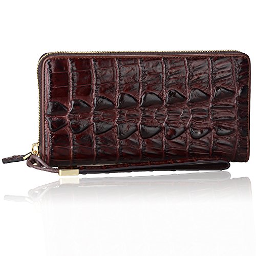 -. Brand : PIJUSHI -. Color : brown -. Department : womens -. Feature : Outside: Genuine Embossed Crocodile leather Lining: synthetic / Dimension: 8.25"x4.5"x1" / Wristlet strap with 6.75" drop / Features a center zip pocket,8 card slots and 3 bill compartments / Exterior features gold hardware -. PackageQuantity : 1 -. ProductGroup : Shoes -. ProductTypeName : HANDBAG -. Title : Pijushi Travel Embossed Crocodile Leather Wallet Zip Around Continental